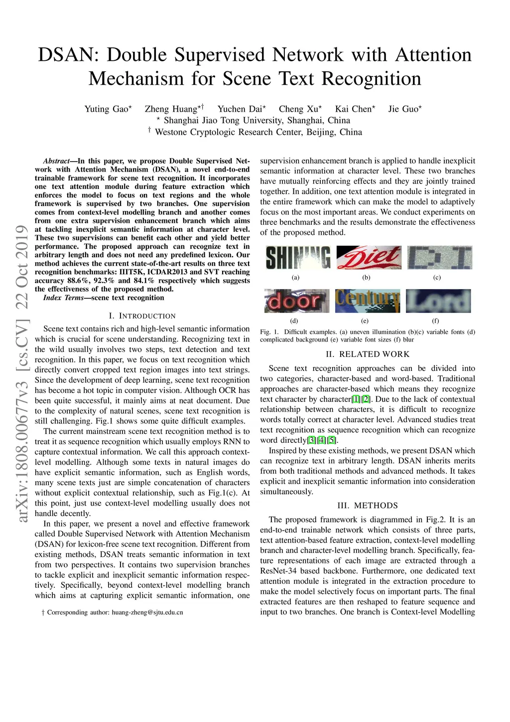 In this paper, we propose Double Supervised Network with Attention Mechanism (DSAN), a novel end-to-end trainable framework for scene text recognition. It incorporates one text attention module during feature extraction which enforces the model to focus on text regions and the whole framework is supervised by two branches. One supervision branch comes from context-level modelling and another comes from one extra supervision enhancement branch which aims at tackling inexplicit semantic information at character level. These two supervisions can benefit each other and yield better performance. The proposed approach can recognize text in arbitrary length and does not need any predefined lexicon. Our method outperforms the current state-of-the-art methods on three text recognition benchmarks: IIIT5K, ICDAR2013 and SVT reaching accuracy 88.6%, 92.3% and 84.1% respectively which suggests the effectiveness of the proposed method.