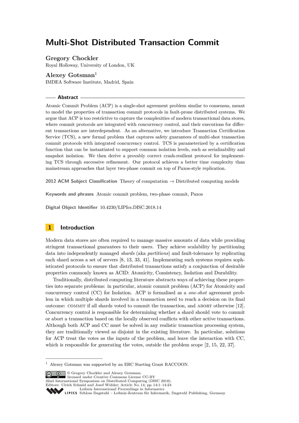 Atomic Commit Problem (ACP) is a single-shot agreement problem similar to consensus, meant to model the properties of transaction commit protocols in fault-prone distributed systems. We argue that ACP is too restrictive to capture the complexities of modern transactional data stores, where commit protocols are integrated with concurrency control, and their executions for different transactions are interdependent. As an alternative, we introduce Transaction Certification Service (TCS), a new formal problem that captures safety guarantees of multi-shot transaction commit protocols with integrated concurrency control. TCS is parameterized by a certification function that can be instantiated to support common isolation levels, such as serializability and snapshot isolation. We then derive a provably correct crash-resilient protocol for implementing TCS through successive refinement. Our protocol achieves a better time complexity than mainstream approaches that layer two-phase commit on top of Paxos-style replication.