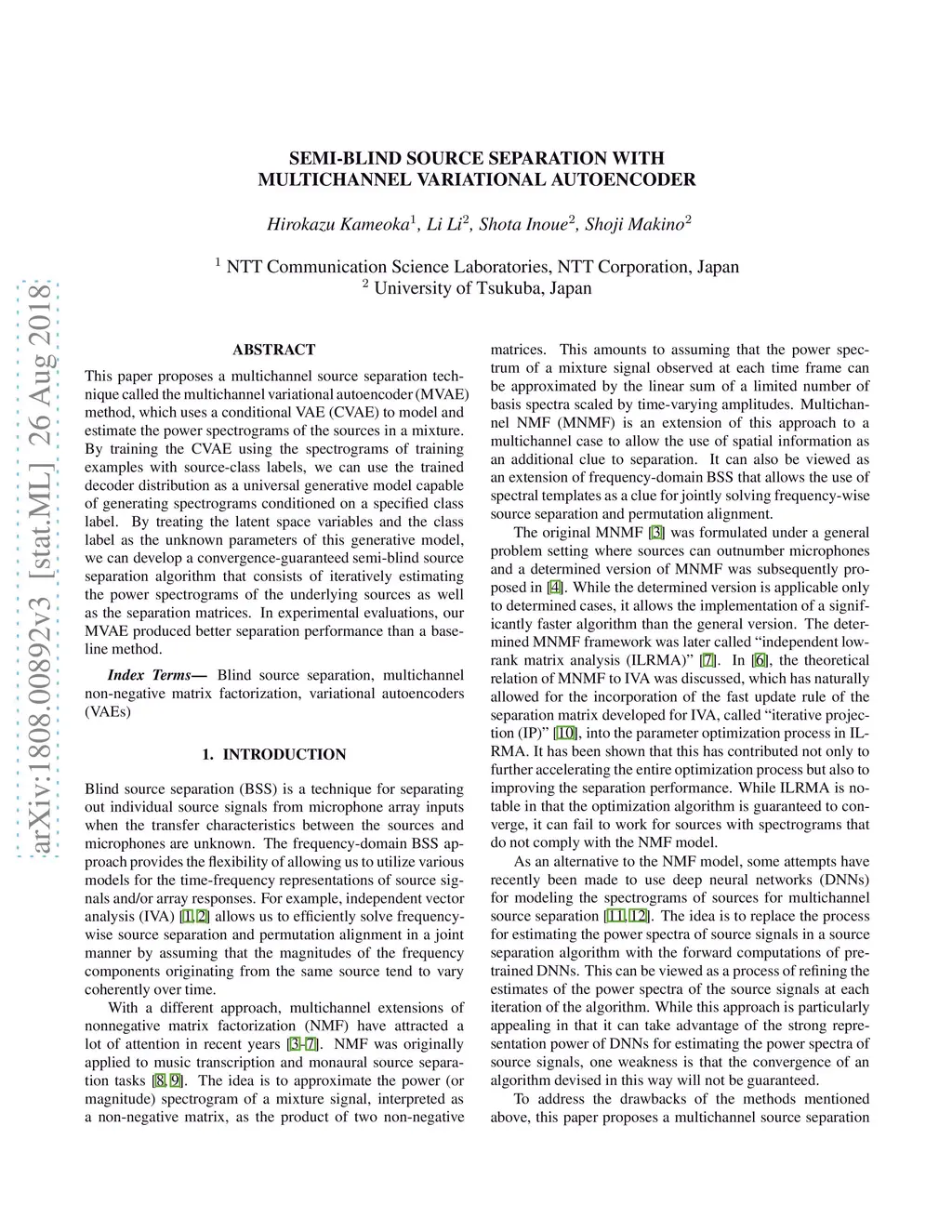 Semi-blind source separation with multichannel variational autoencoder