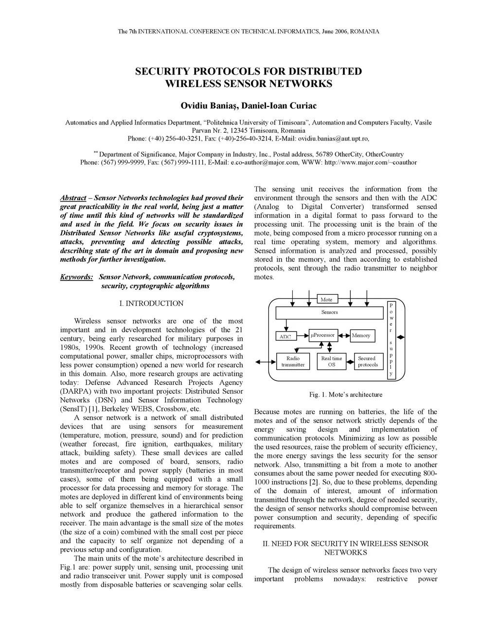 Sensor Networks technologies had proved their great practicability in the real world, being just a matter of time until this kind of networks will be standardized and used in the field. We focus on security issues in Distributed Sensor Networks like useful cryptosystems, attacks, preventing and detecting possible attacks, describing state of the art in domain and proposing new methods for further investigation
