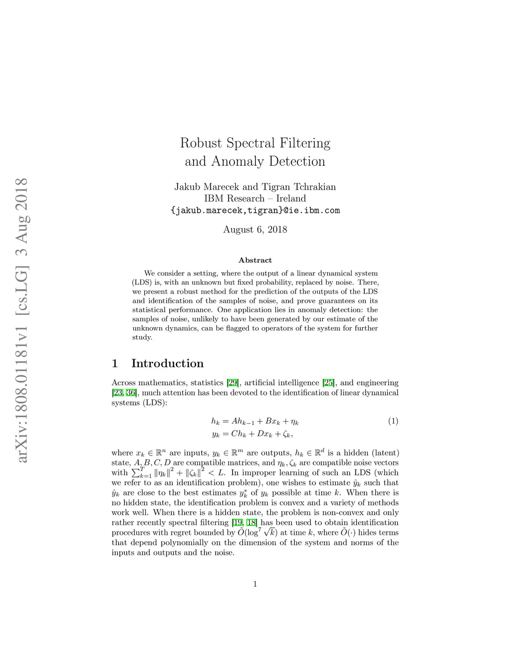 We consider a setting, where the output of a linear dynamical system (LDS) is, with an unknown but fixed probability, replaced by noise. There, we present a robust method for the prediction of the outputs of the LDS and identification of the samples of noise, and prove guarantees on its statistical performance. One application lies in anomaly detection: the samples of noise, unlikely to have been generated by the dynamics, can be flagged to operators of the system for further study.