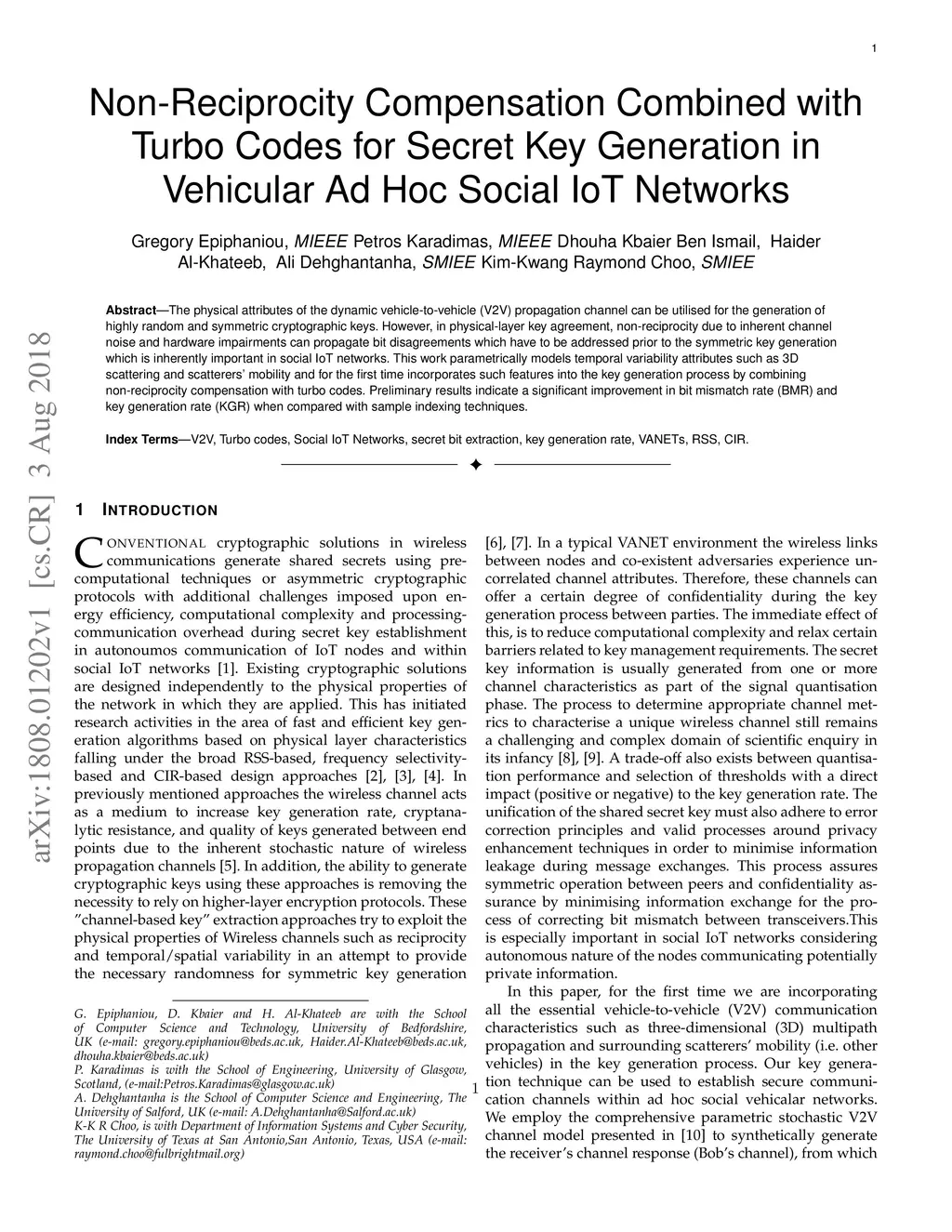 The physical attributes of the dynamic vehicle-to-vehicle (V2V) propagation channel can be utilised for the generation of highly random and symmetric cryptographic keys. However, in a physical-layer key agreement scheme, non-reciprocity due to inherent channel noise and hardware impairments can propagate bit disagreements. This has to be addressed prior to the symmetric key generation which is inherently important in social Internet of Things (IoT) networks, including in adversarial settings (e.g. battlefields). In this paper, we parametrically incorporate temporal variability attributes, such as three-dimensional (3D) scattering and scatterers mobility. Accordingly, this is the first work to incorporate such features into the key generation process by combining non-reciprocity compensation with turbo codes. Preliminary results indicate a significant improvement when using Turbo Codes in bit mismatch rate (BMR) and key generation rate (KGR) in comparison to sample indexing techniques.