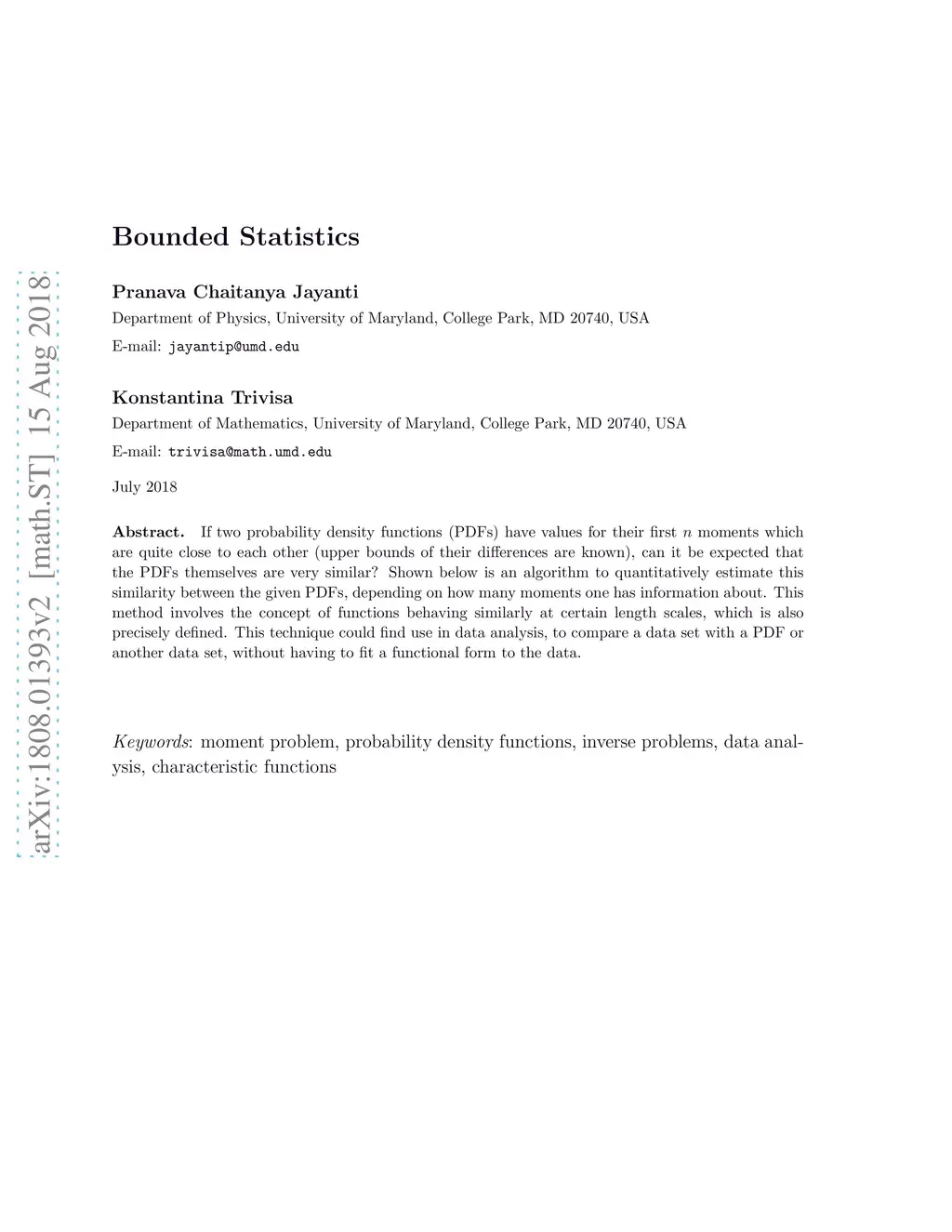 If two probability density functions (PDFs) have values for their first moments which are quite close to each other (upper bounds of their differences are known), can it be expected that the PDFs themselves are very similar? Shown below is an algorithm to quantitatively estimate this "similarity" between the given PDFs, depending on how many moments one has information about. This method involves the concept of functions behaving "similarly" at certain "length scales", which is also precisely defined. This technique could find use in data analysis, to compare a data set with a PDF or another data set, without having to fit a functional form to the data.