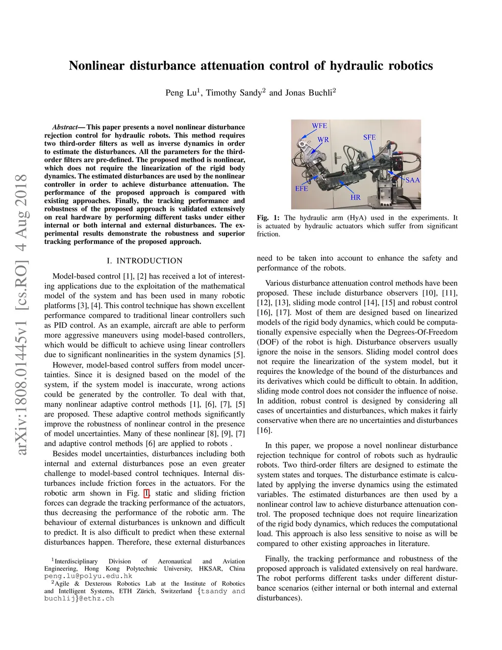 Nonlinear disturbance attenuation control of hydraulic robotics