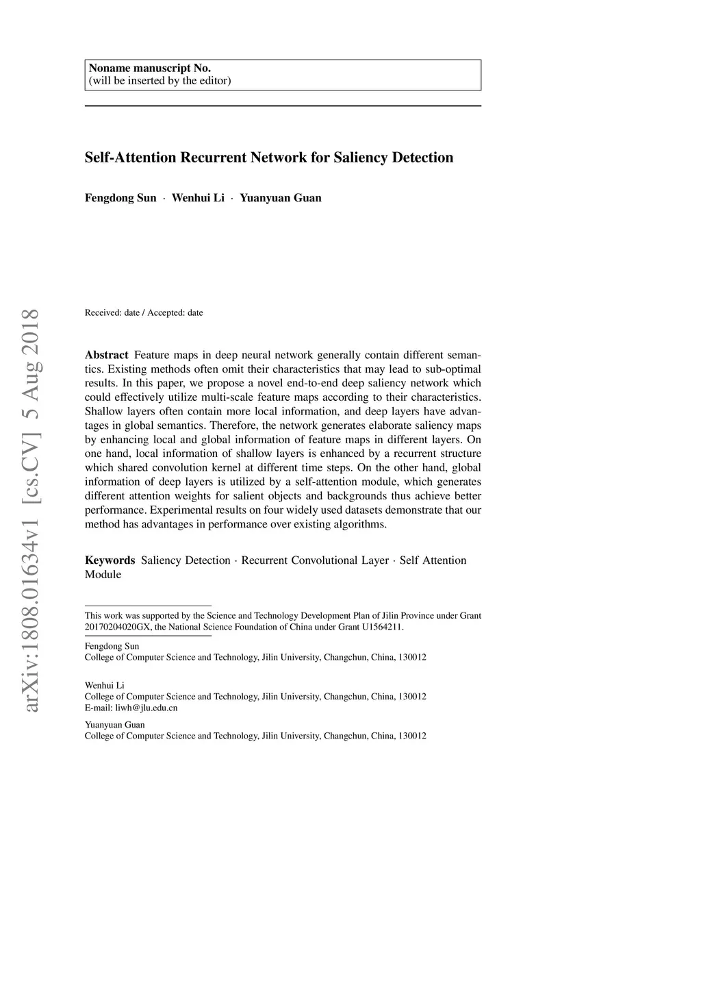 Self-Attention Recurrent Network for Saliency Detection