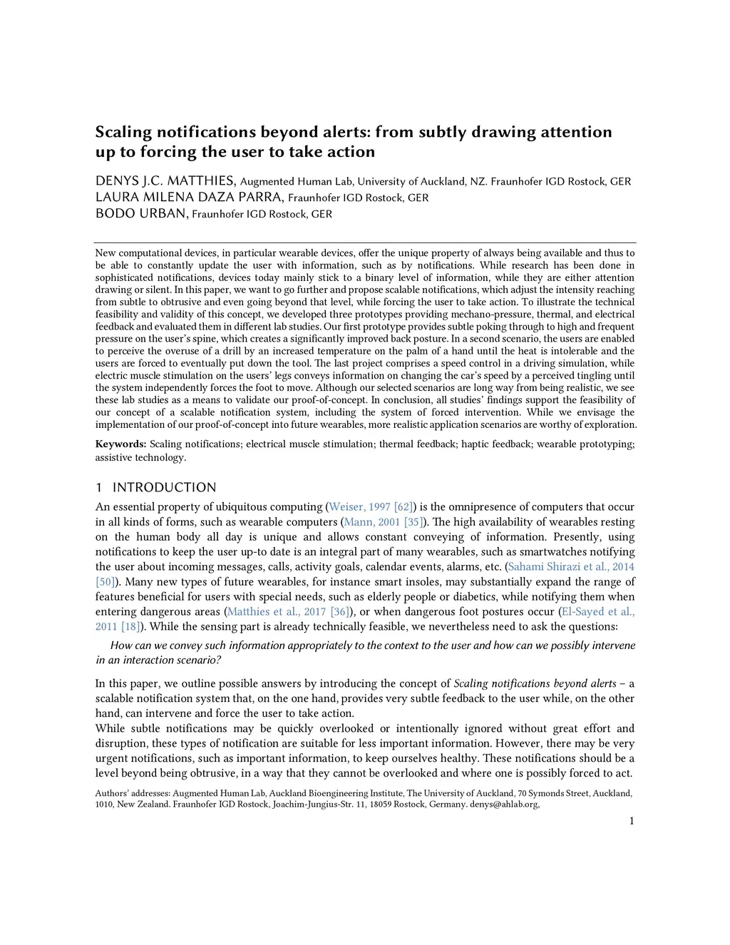 New computational devices, in particular wearable devices, offer the unique property of always being available and thus to be able to constantly update the user with information, such as by notifications. While research has been done in sophisticated notifications, devices today mainly stick to a binary level of information, while they are either attention drawing or silent. In this paper, we want to go further and propose scalable notifications, which adjust the intensity reaching from subtle to obtrusive and even going beyond that level, while forcing the user to take action. To illustrate the technical feasibility and validity of this concept, we developed three prototypes providing mechano-pressure, thermal, and electrical feedback and evaluated them in different lab studies. Our first prototype provides subtle poking through to high and frequent pressure on the user's spine, which creates a significantly improved back posture. In a second scenario, the users are enabled to perceive the overuse of a drill by an increased temperature on the palm of a hand until the heat is intolerable and the users are forced to eventually put down the tool. The last project comprises a speed control in a driving simulation, while electric muscle stimulation on the users' legs conveys information on changing the car's speed by a perceived tingling until the system independently forces the foot to move. Although our selected scenarios are long way from being realistic, we see these lab studies as a means to validate our proof-of-concept. In conclusion, all studies' findings support the feasibility of our concept of a scalable notification system, including the system of forced intervention. While we envisage the implementation of our proof-of-concept into future wearables, more realistic application scenarios are worthy of exploration.
