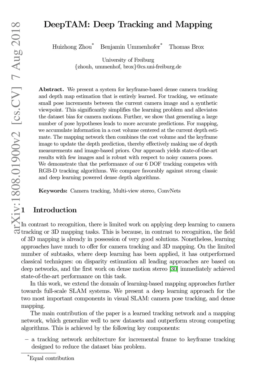 DeepTAM: Deep Tracking and Mapping
