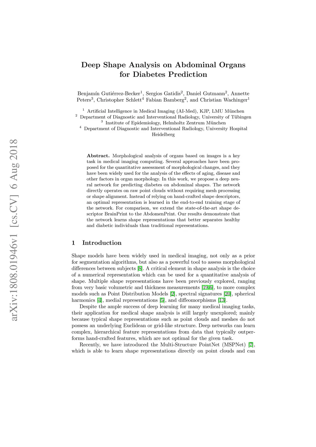 Morphological analysis of organs based on images is a key task in medical imaging computing. Several approaches have been proposed for the quantitative assessment of morphological changes, and they have been widely used for the analysis of the effects of aging, disease and other factors in organ morphology. In this work, we propose a deep neural network for predicting diabetes on abdominal shapes. The network directly operates on raw point clouds without requiring mesh processing or shape alignment. Instead of relying on hand-crafted shape descriptors, an optimal representation is learned in the end-to-end training stage of the network. For comparison, we extend the state-of-the-art shape descriptor BrainPrint to the AbdomenPrint. Our results demonstrate that the network learns shape representations that better separates healthy and diabetic individuals than traditional representations.