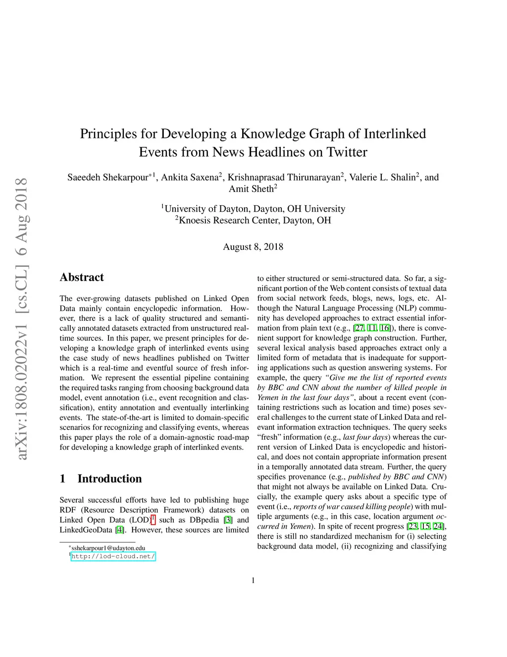 The ever-growing datasets published on Linked Open Data mainly contain encyclopedic information. However, there is a lack of quality structured and semantically annotated datasets extracted from unstructured real-time sources. In this paper, we present principles for developing a knowledge graph of interlinked events using the case study of news headlines published on Twitter which is a real-time and eventful source of fresh information. We represent the essential pipeline containing the required tasks ranging from choosing background data model, event annotation (i.e., event recognition and classification), entity annotation and eventually interlinking events. The state-of-the-art is limited to domain-specific scenarios for recognizing and classifying events, whereas this paper plays the role of a domain-agnostic road-map for developing a knowledge graph of interlinked events.