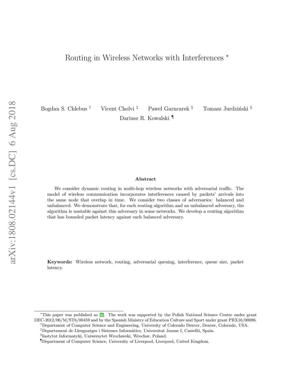 Routing in Wireless Networks with Interferences