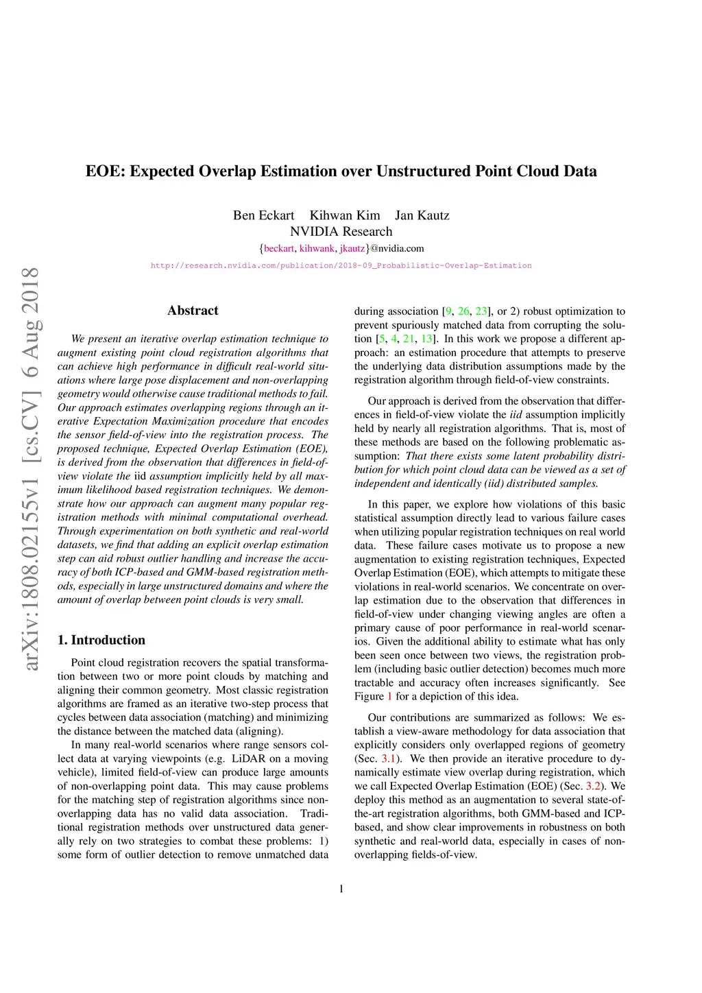 EOE: Expected Overlap Estimation over Unstructured Point Cloud Data