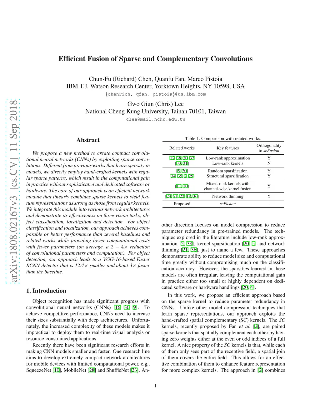 We propose a new method to create compact convolutional neural networks (CNNs) by exploiting sparse convolutions. Different from previous works that learn sparsity in models, we directly employ hand-crafted kernels with regular sparse patterns, which result in the computational gain in practice without sophisticated and dedicated software or hardware. The core of our approach is an efficient network module that linearly combines sparse kernels to yield feature representations as strong as those from regular kernels. We integrate this module into various network architectures and demonstrate its effectiveness on three vision tasks, object classification, localization and detection. For object classification and localization, our approach achieves comparable or better performance than several baselines and related works while providing lower computational costs with fewer parameters (on average, a reduction of convolutional parameters and computation). For object detection, our approach leads to a VGG-16-based Faster RCNN detector that is 12.4 smaller and about 3 faster than the baseline.