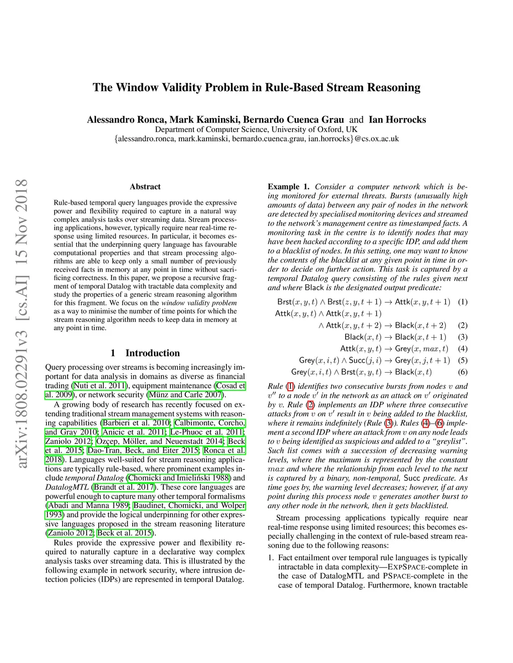 Rule-based temporal query languages provide the expressive power and flexibility required to capture in a natural way complex analysis tasks over streaming data. Stream processing applications, however, typically require near real-time response using limited resources. In particular, it becomes essential that the underpinning query language has favourable computational properties and that stream processing algorithms are able to keep only a small number of previously received facts in memory at any point in time without sacrificing correctness. In this paper, we propose a recursive fragment of temporal Datalog with tractable data complexity and study the properties of a generic stream reasoning algorithm for this fragment. We focus on the window validity problem as a way to minimise the number of time points for which the stream reasoning algorithm needs to keep data in memory at any point in time.