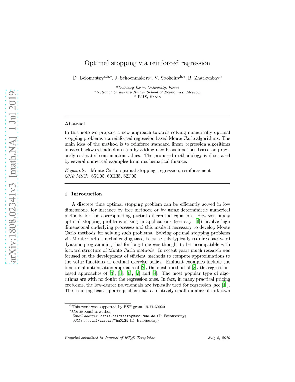 In this note we propose a new approach towards solving numerically optimal stopping problems via reinforced regression based Monte Carlo algorithms. The main idea of the method is to reinforce standard linear regression algorithms in each backward induction step by adding new basis functions based on previously estimated continuation values. The proposed methodology is illustrated by a numerical example from mathematical finance.