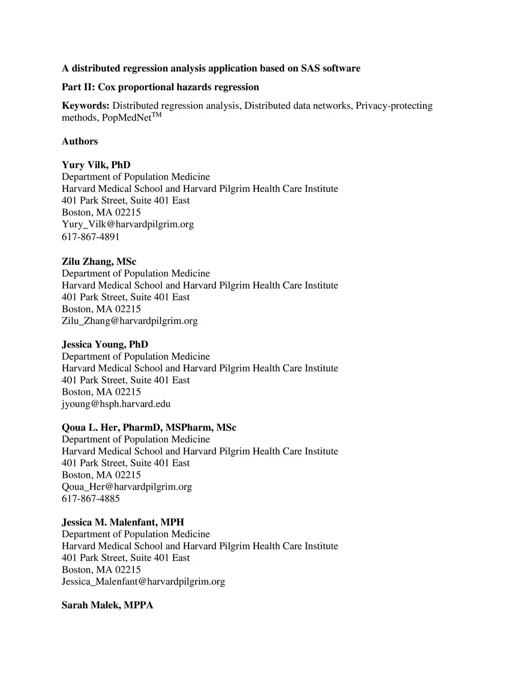 Previous work has demonstrated the feasibility and value of conducting distributed regression analysis (DRA), a privacy-protecting analytic method that performs multivariable-adjusted regression analysis with only summary-level information from participating sites. To our knowledge, there are no DRA applications in SAS, the statistical software used by several large national distributed data networks (DDNs), including the Sentinel System and PCORnet. SAS/IML is available to perform the required matrix computations for DRA in the SAS system. However, not all data partners in these large DDNs have access to SAS/IML, which is licensed separately. In this second article of a two-paper series, we describe a DRA application developed using Base SAS and SAS/STAT modules for distributed Cox proportional hazards regression within horizontally partitioned DDNs and its successful tests.