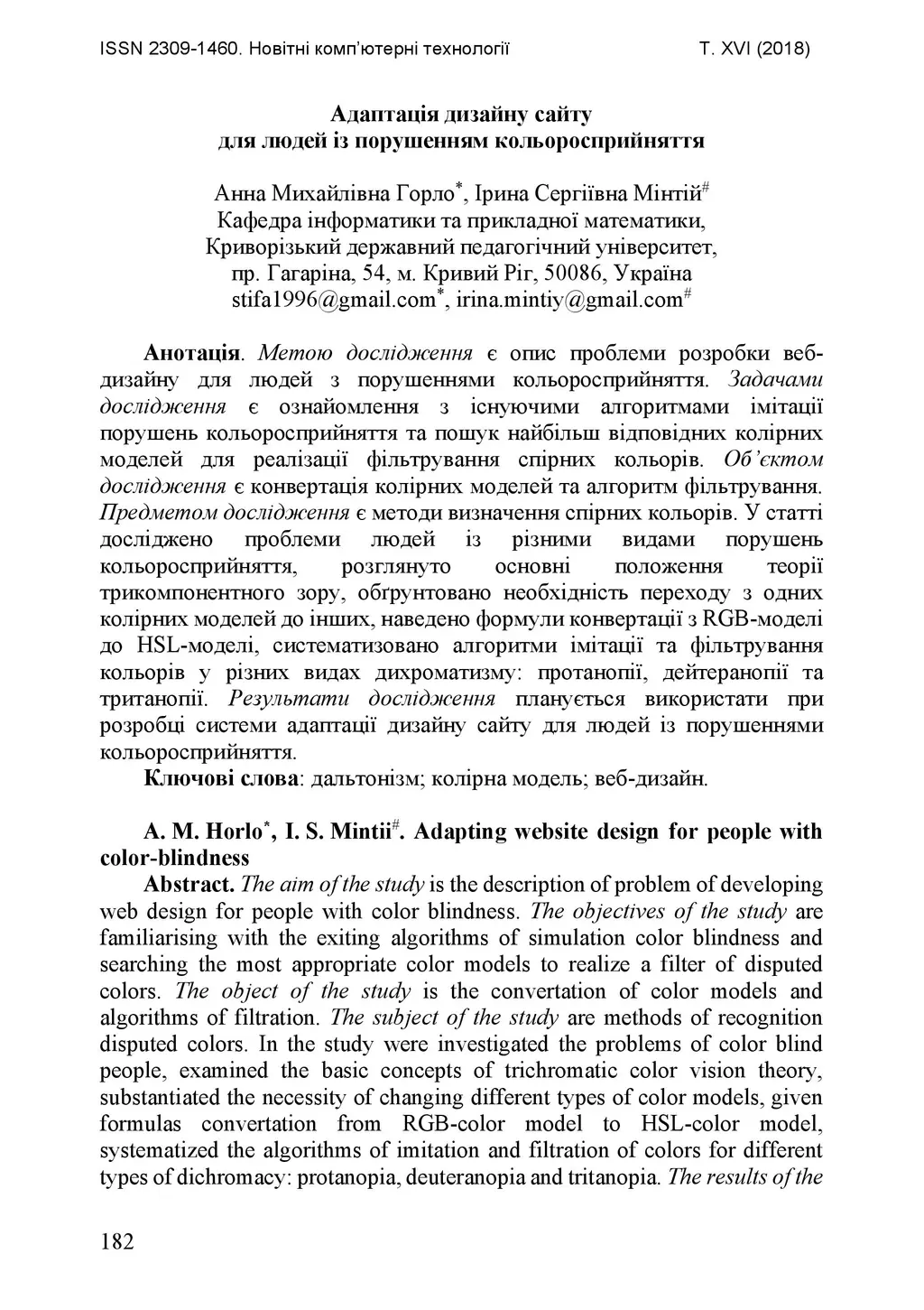 The aim of the study is the description of problem of developing web design for people with color blindness. The objectives of the study are familiarising with the exiting algorithms of simulation color blindness and searching the most appropriate color models to realize a filter of disputed colors. The object of the study is the convertation of color models and algorithms of filtration. The subject of the study are methods of recognition disputed colors. In the study were investigated the problems of color blind people, examined the basic concepts of trichromatic color vision theory, substantiated the necessity of changing different types of color models, given formulas convertation from RGB-color model to HSL-color model, systematized the algorithms of imitation and filtration of colors for different types of dichromacy: protanopia, deuteranopia and tritanopia. The results of the study are planned using in development of adapting website design for people with color blindness.