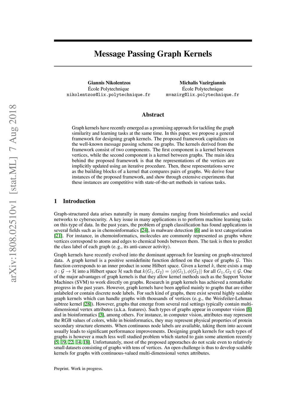 Graph kernels have recently emerged as a promising approach for tackling the graph similarity and learning tasks at the same time. In this paper, we propose a general framework for designing graph kernels. The proposed framework capitalizes on the well-known message passing scheme on graphs. The kernels derived from the framework consist of two components. The first component is a kernel between vertices, while the second component is a kernel between graphs. The main idea behind the proposed framework is that the representations of the vertices are implicitly updated using an iterative procedure. Then, these representations serve as the building blocks of a kernel that compares pairs of graphs. We derive four instances of the proposed framework, and show through extensive experiments that these instances are competitive with state-of-the-art methods in various tasks.