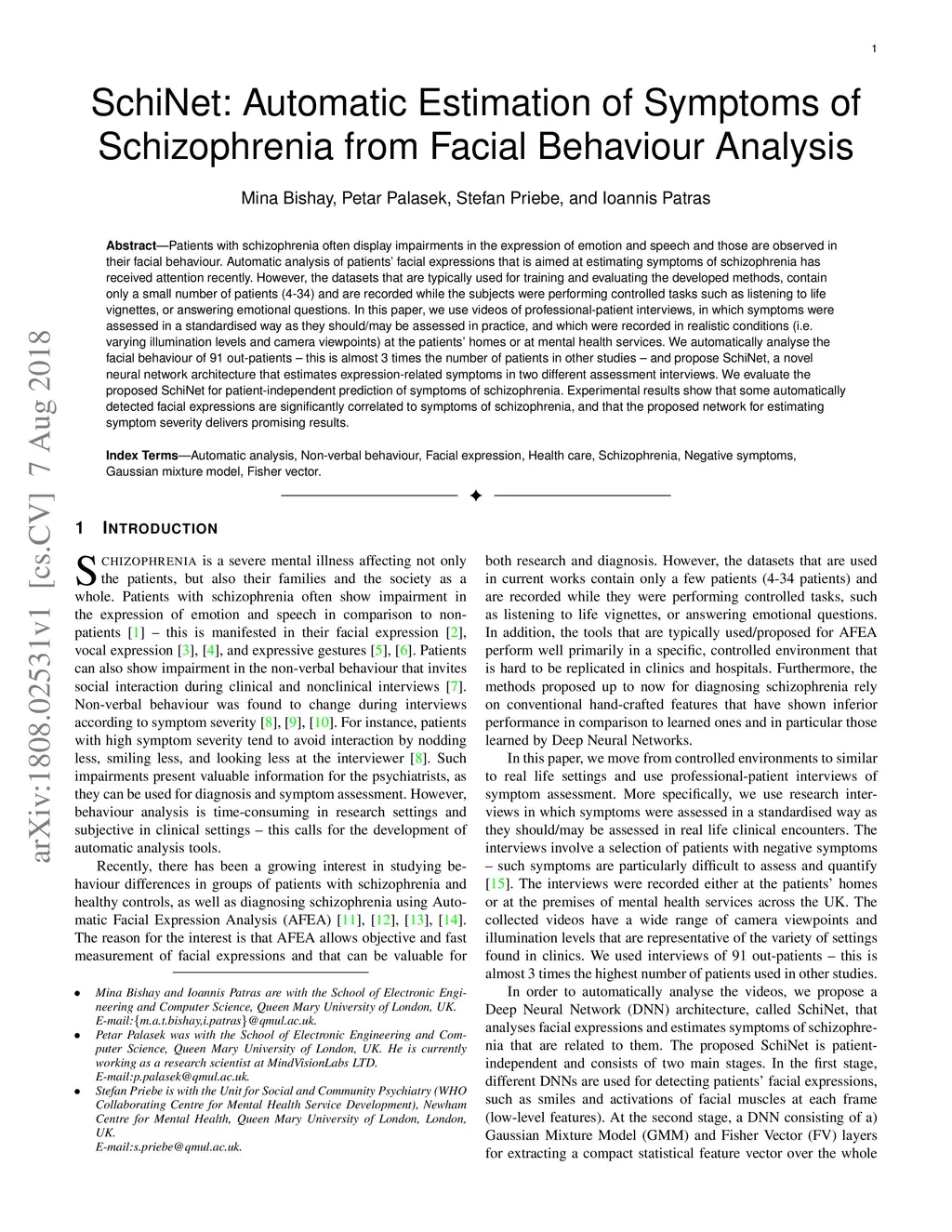 SchiNet: Automatic Estimation of Symptoms of Schizophrenia from Facial