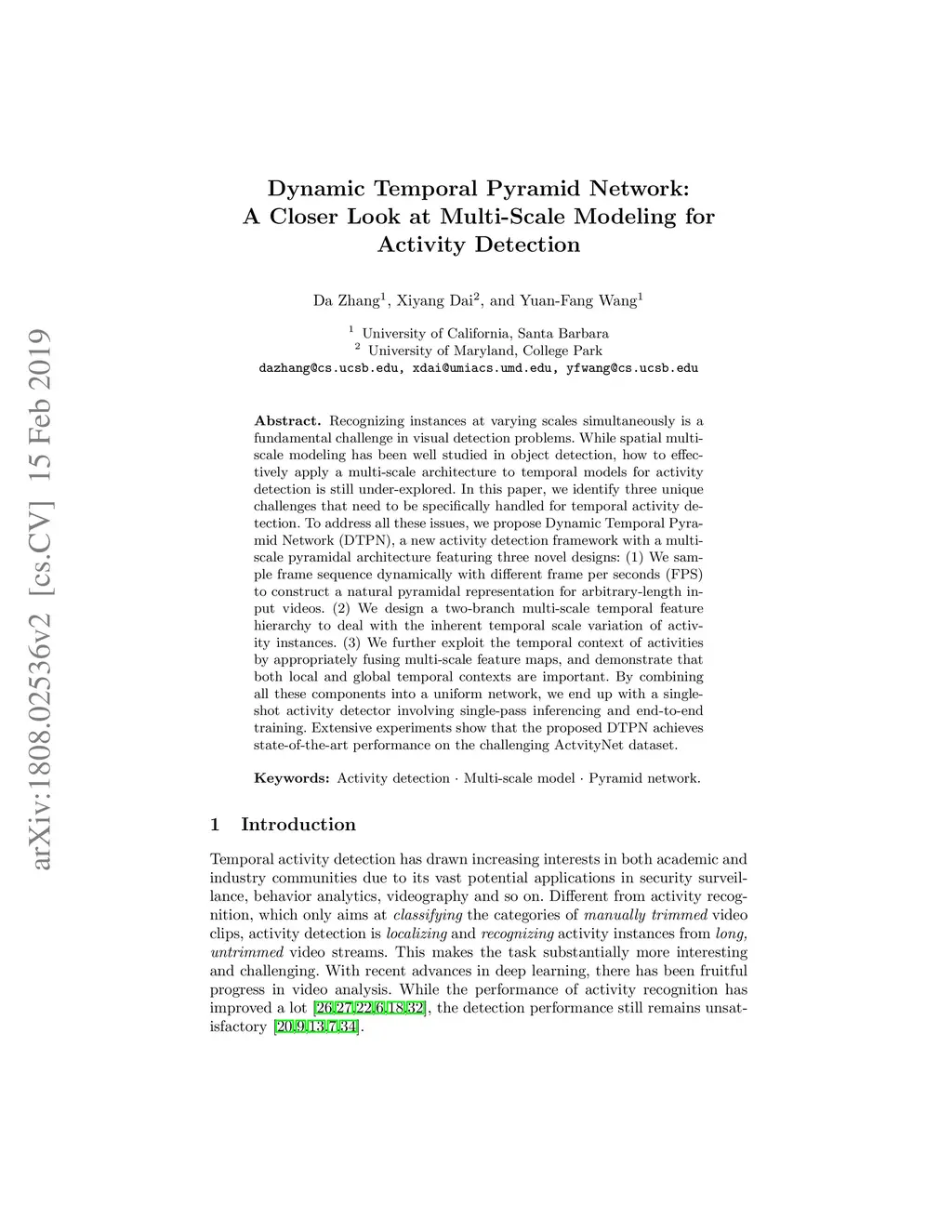 Recognizing instances at different scales simultaneously is a fundamental challenge in visual detection problems. While spatial multi-scale modeling has been well studied in object detection, how to effectively apply a multi-scale architecture to temporal models for activity detection is still under-explored. In this paper, we identify three unique challenges that need to be specifically handled for temporal activity detection compared to its spatial counterpart. To address all these issues, we propose Dynamic Temporal Pyramid Network (DTPN), a new activity detection framework with a multi-scale pyramidal architecture featuring three novel designs: (1) We sample input video frames dynamically with varying frame per seconds (FPS) to construct a natural pyramidal input for video of an arbitrary length. (2) We design a two-branch multi-scale temporal feature hierarchy to deal with the inherent temporal scale variation of activity instances. (3) We further exploit the temporal context of activities by appropriately fusing multi-scale feature maps, and demonstrate that both local and global temporal contexts are important. By combining all these components into a uniform network, we end up with a single-shot activity detector involving single-pass inferencing and end-to-end training. Extensive experiments show that the proposed DTPN achieves state-of-the-art performance on the challenging ActvityNet dataset.