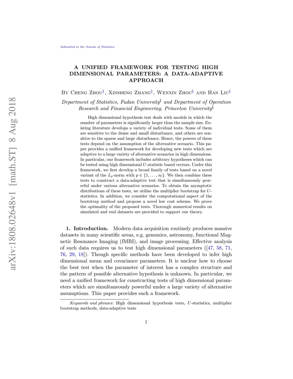 High dimensional hypothesis test deals with models in which the number of parameters is significantly larger than the sample size. Existing literature develops a variety of individual tests. Some of them are sensitive to the dense and small disturbance, and others are sensitive to the sparse and large disturbance. Hence, the powers of these tests depend on the assumption of the alternative scenario. This paper provides a unified framework for developing new tests which are adaptive to a large variety of alternative scenarios in high dimensions. In particular, our framework includes arbitrary hypotheses which can be tested using high dimensional -statistic based vectors. Under this framework, we first develop a broad family of tests based on a novel variant of the -norm with . We then combine these tests to construct a data-adaptive test that is simultaneously powerful under various alternative scenarios. To obtain the asymptotic distributions of these tests, we utilize the multiplier bootstrap for -statistics. In addition, we consider the computational aspect of the bootstrap method and propose a novel low-cost scheme. We prove the optimality of the proposed tests. Thorough numerical results on simulated and real datasets are provided to support our theory.