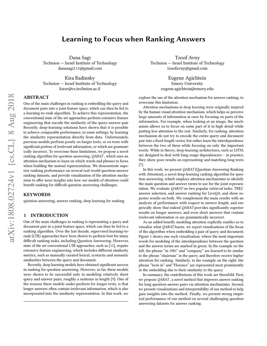 Learning to Focus when Ranking Answers