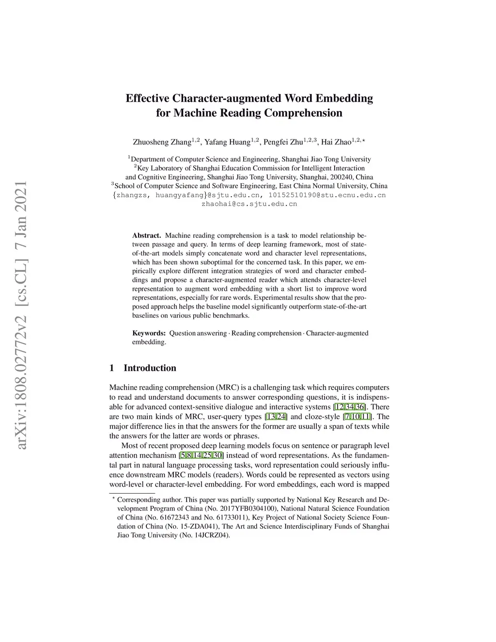 Effective Character-augmented Word Embedding for Machine Reading