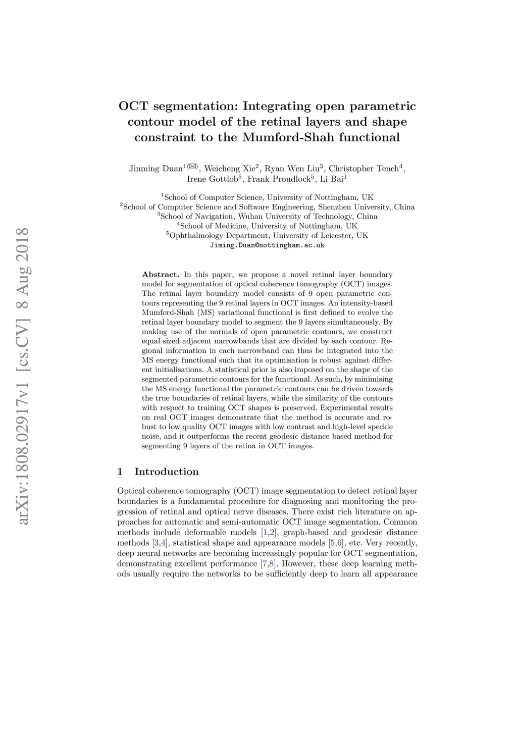 OCT segmentation: Integrating open parametric contour model of the
