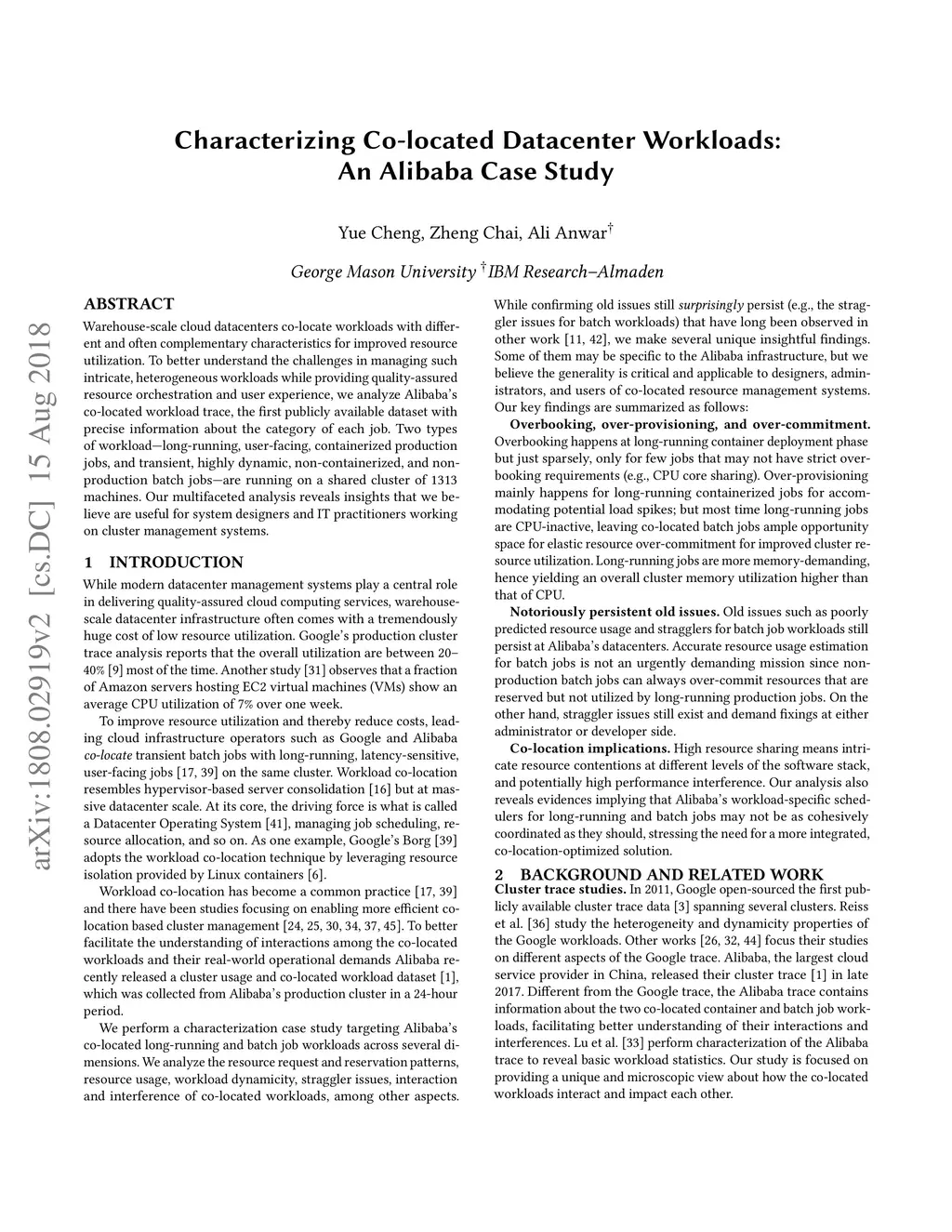 Warehouse-scale cloud datacenters co-locate workloads with different and often complementary characteristics for improved resource utilization. To better understand the challenges in managing such intricate, heterogeneous workloads while providing quality-assured resource orchestration and user experience, we analyze Alibaba's co-located workload trace, the first publicly available dataset with precise information about the category of each job. Two types of workload---long-running, user-facing, containerized production jobs, and transient, highly dynamic, non-containerized, and non-production batch jobs---are running on a shared cluster of 1313 machines. Our multifaceted analysis reveals insights that we believe are useful for system designers and IT practitioners working on cluster management systems.