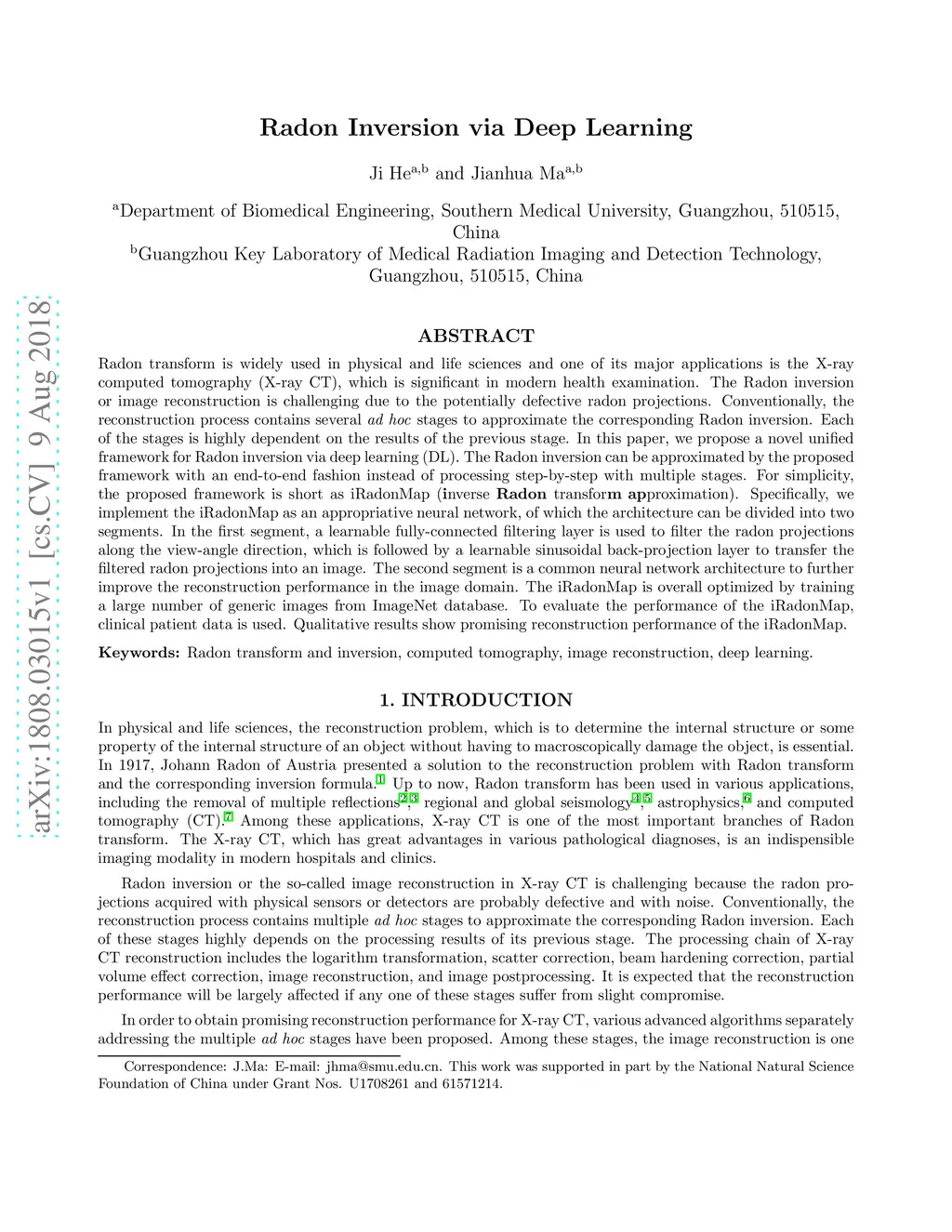 Radon transform is widely used in physical and life sciences and one of its major applications is the X-ray computed tomography (X-ray CT), which is significant in modern health examination. The Radon inversion or image reconstruction is challenging due to the potentially defective radon projections. Conventionally, the reconstruction process contains several ad hoc stages to approximate the corresponding Radon inversion. Each of the stages is highly dependent on the results of the previous stage. In this paper, we propose a novel unified framework for Radon inversion via deep learning (DL). The Radon inversion can be approximated by the proposed framework with an end-to-end fashion instead of processing step-by-step with multiple stages. For simplicity, the proposed framework is short as iRadonMap (inverse Radon transform approximation). Specifically, we implement the iRadonMap as an appropriative neural network, of which the architecture can be divided into two segments. In the first segment, a learnable fully-connected filtering layer is used to filter the radon projections along the view-angle direction, which is followed by a learnable sinusoidal back-projection layer to transfer the filtered radon projections into an image. The second segment is a common neural network architecture to further improve the reconstruction performance in the image domain. The iRadonMap is overall optimized by training a large number of generic images from ImageNet database. To evaluate the performance of the iRadonMap, clinical patient data is used. Qualitative results show promising reconstruction performance of the iRadonMap.