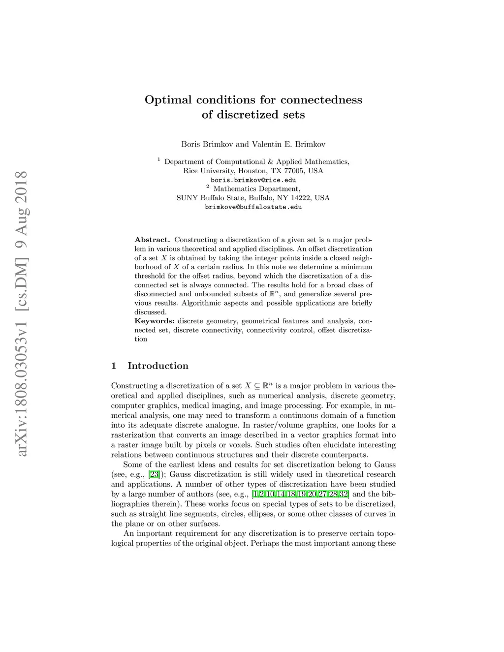 Optimal conditions for connectedness of discretized sets