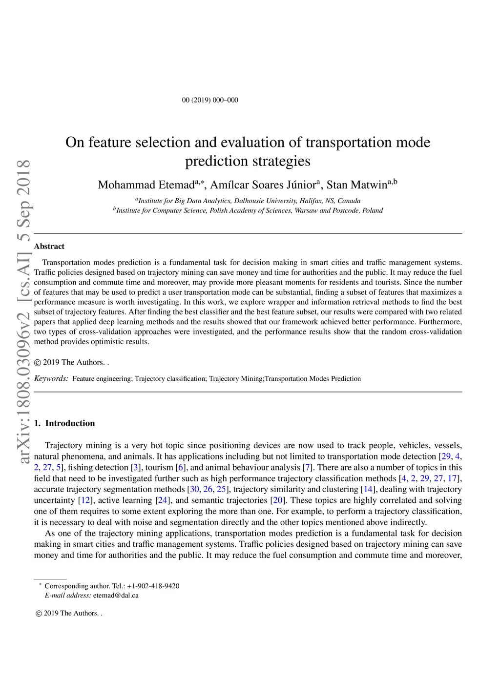 On feature selection and evaluation of transportation mode prediction