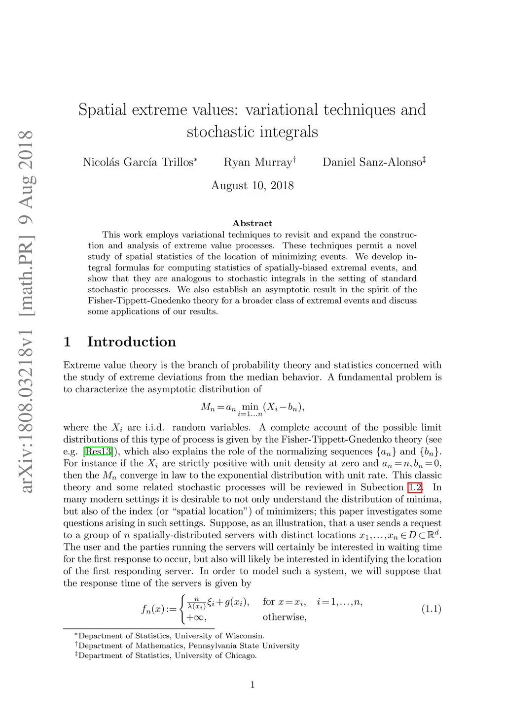 This work employs variational techniques to revisit and expand the construction and analysis of extreme value processes. These techniques permit a novel study of spatial statistics of the location of minimizing events. We develop integral formulas for computing statistics of spatially-biased extremal events, and show that they are analogous to stochastic integrals in the setting of standard stochastic processes. We also establish an asymptotic result in the spirit of the Fisher-Tippett-Gnedenko theory for a broader class of extremal events and discuss some applications of our results.