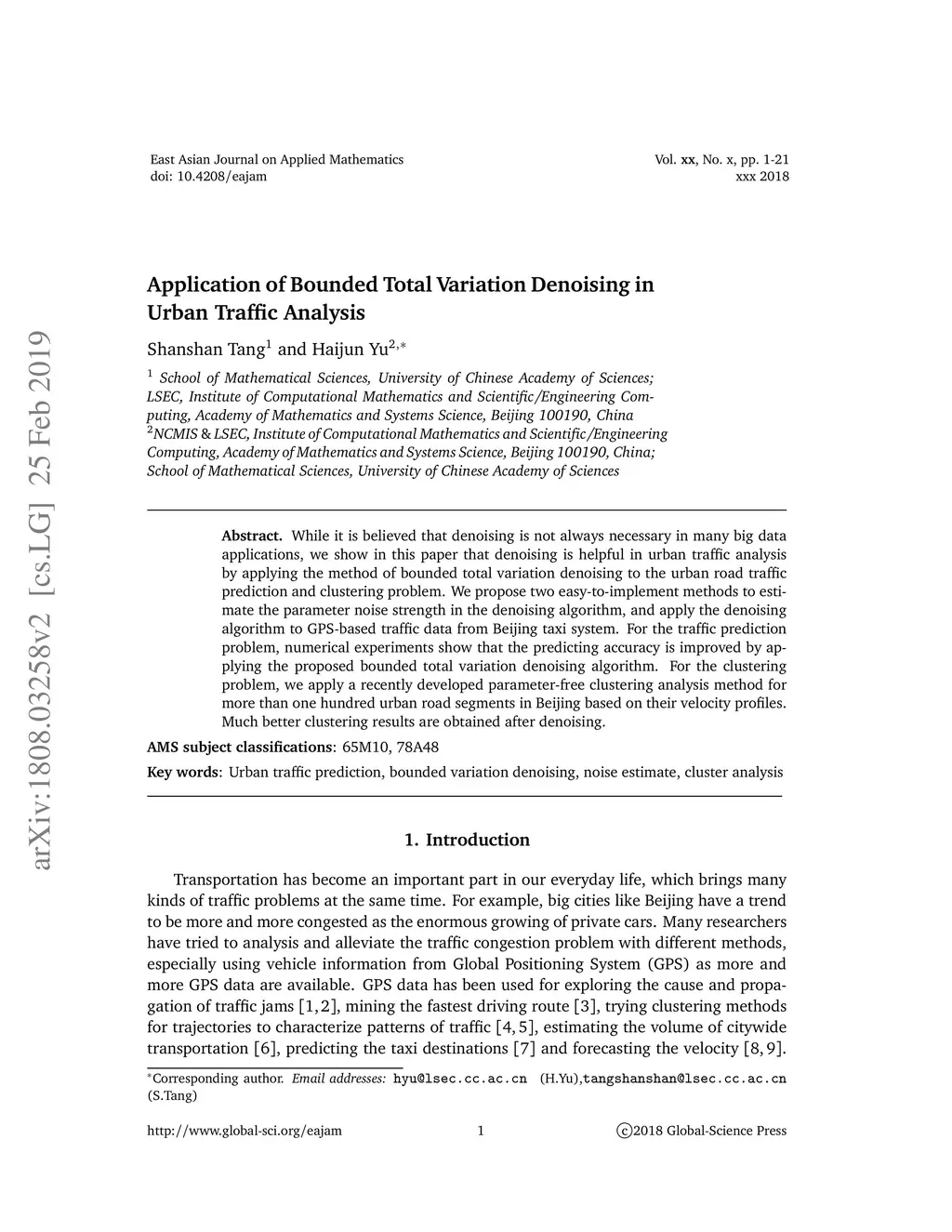 Application of Bounded Total Variation Denoising in Urban Traffic