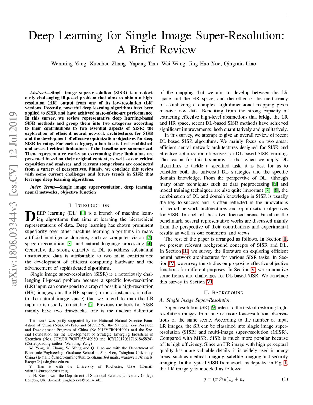 Deep Learning for Single Image Super-Resolution: A Brief Review