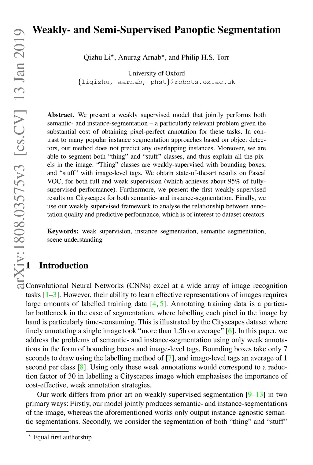 Weakly- and Semi-Supervised Panoptic Segmentation