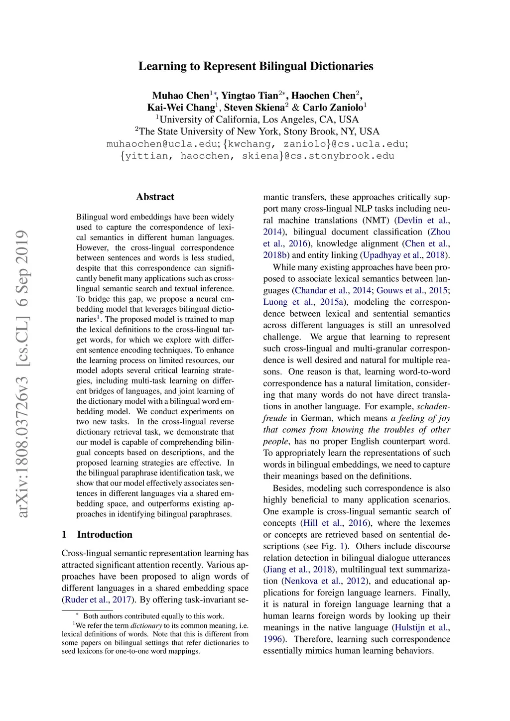 Learning to Represent Bilingual Dictionaries