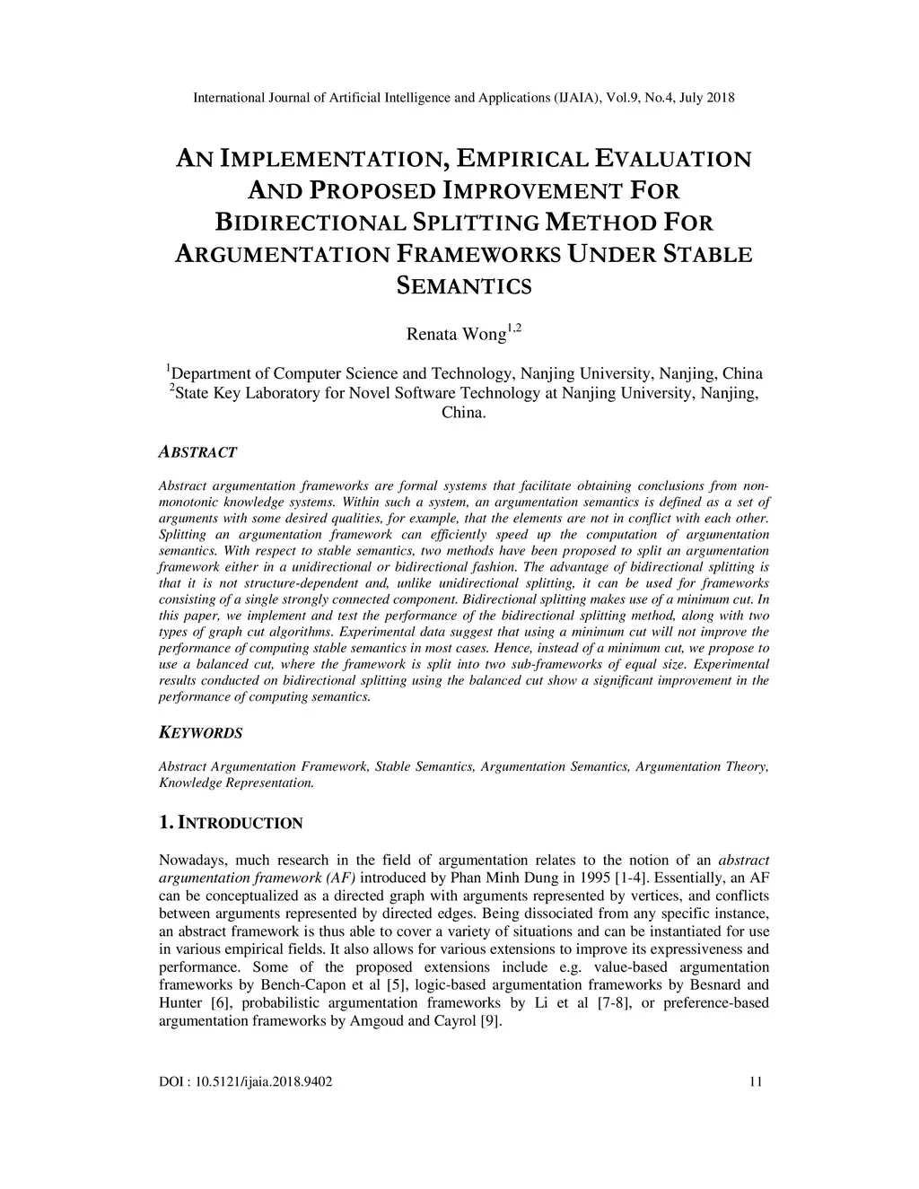 Abstract argumentation frameworks are formal systems that facilitate obtaining conclusions from non-monotonic knowledge systems. Within such a system, an argumentation semantics is defined as a set of arguments with some desired qualities, for example, that the elements are not in conflict with each other. Splitting an argumentation framework can efficiently speed up the computation of argumentation semantics. With respect to stable semantics, two methods have been proposed to split an argumentation framework either in a unidirectional or bidirectional fashion. The advantage of bidirectional splitting is that it is not structure-dependent and, unlike unidirectional splitting, it can be used for frameworks consisting of a single strongly connected component. Bidirectional splitting makes use of a minimum cut. In this paper, we implement and test the performance of the bidirectional splitting method, along with two types of graph cut algorithms. Experimental data suggest that using a minimum cut will not improve the performance of computing stable semantics in most cases. Hence, instead of a minimum cut, we propose to use a balanced cut, where the framework is split into two sub-frameworks of equal size. Experimental results conducted on bidirectional splitting using the balanced cut show a significant improvement in the performance of computing semantics.