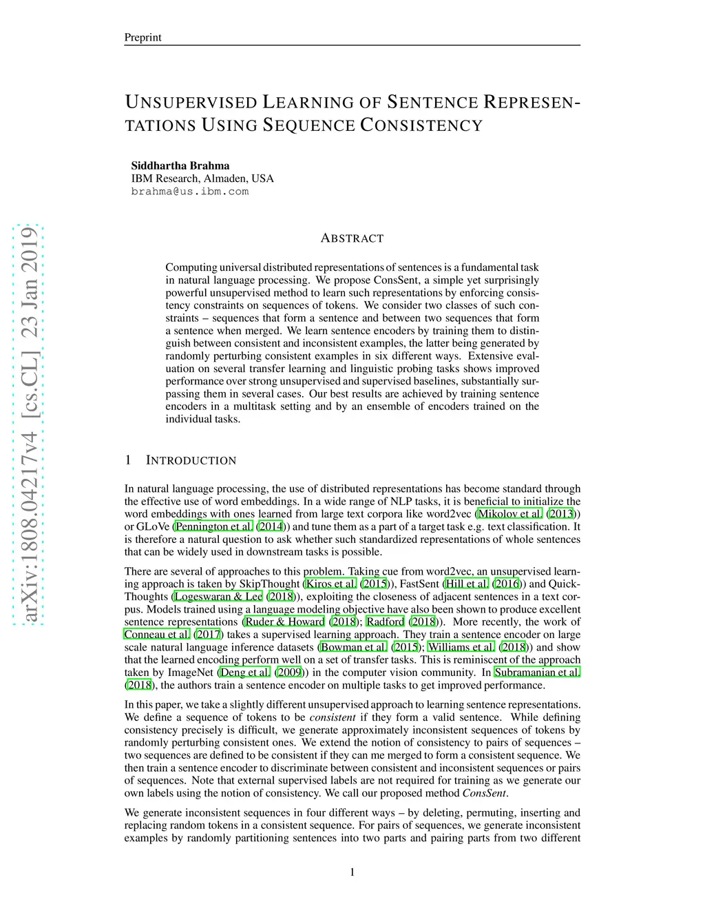 Unsupervised Learning of Sentence Representations Using Sequence
