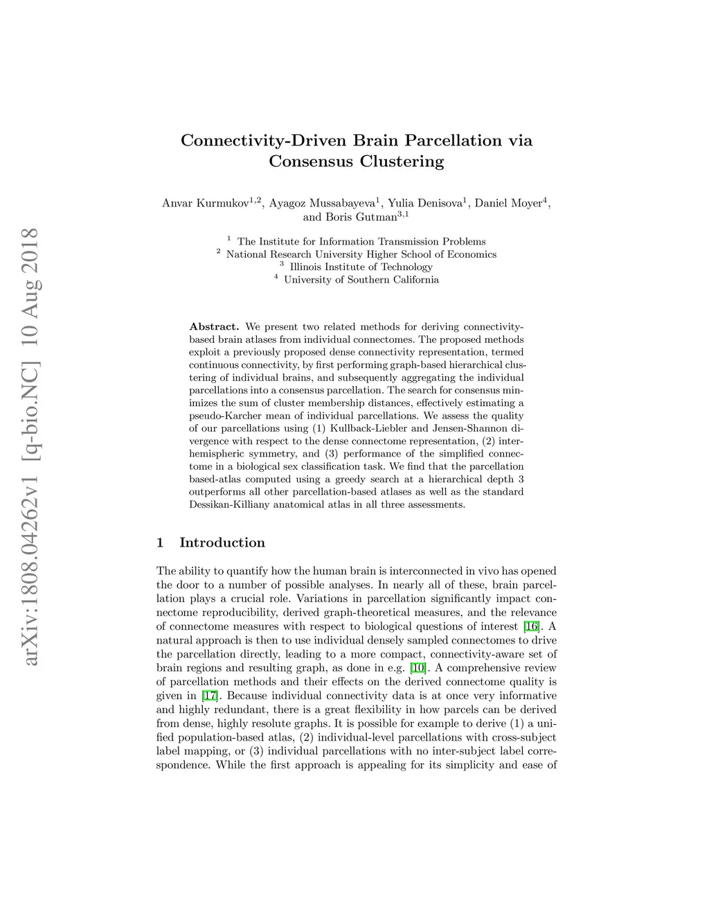 We present two related methods for deriving connectivity-based brain atlases from individual connectomes. The proposed methods exploit a previously proposed dense connectivity representation, termed continuous connectivity, by first performing graph-based hierarchical clustering of individual brains, and subsequently aggregating the individual parcellations into a consensus parcellation. The search for consensus minimizes the sum of cluster membership distances, effectively estimating a pseudo-Karcher mean of individual parcellations. We assess the quality of our parcellations using (1) Kullback-Liebler and Jensen-Shannon divergence with respect to the dense connectome representation, (2) inter-hemispheric symmetry, and (3) performance of the simplified connectome in a biological sex classification task. We find that the parcellation based-atlas computed using a greedy search at a hierarchical depth 3 outperforms all other parcellation-based atlases as well as the standard Dessikan-Killiany anatomical atlas in all three assessments.