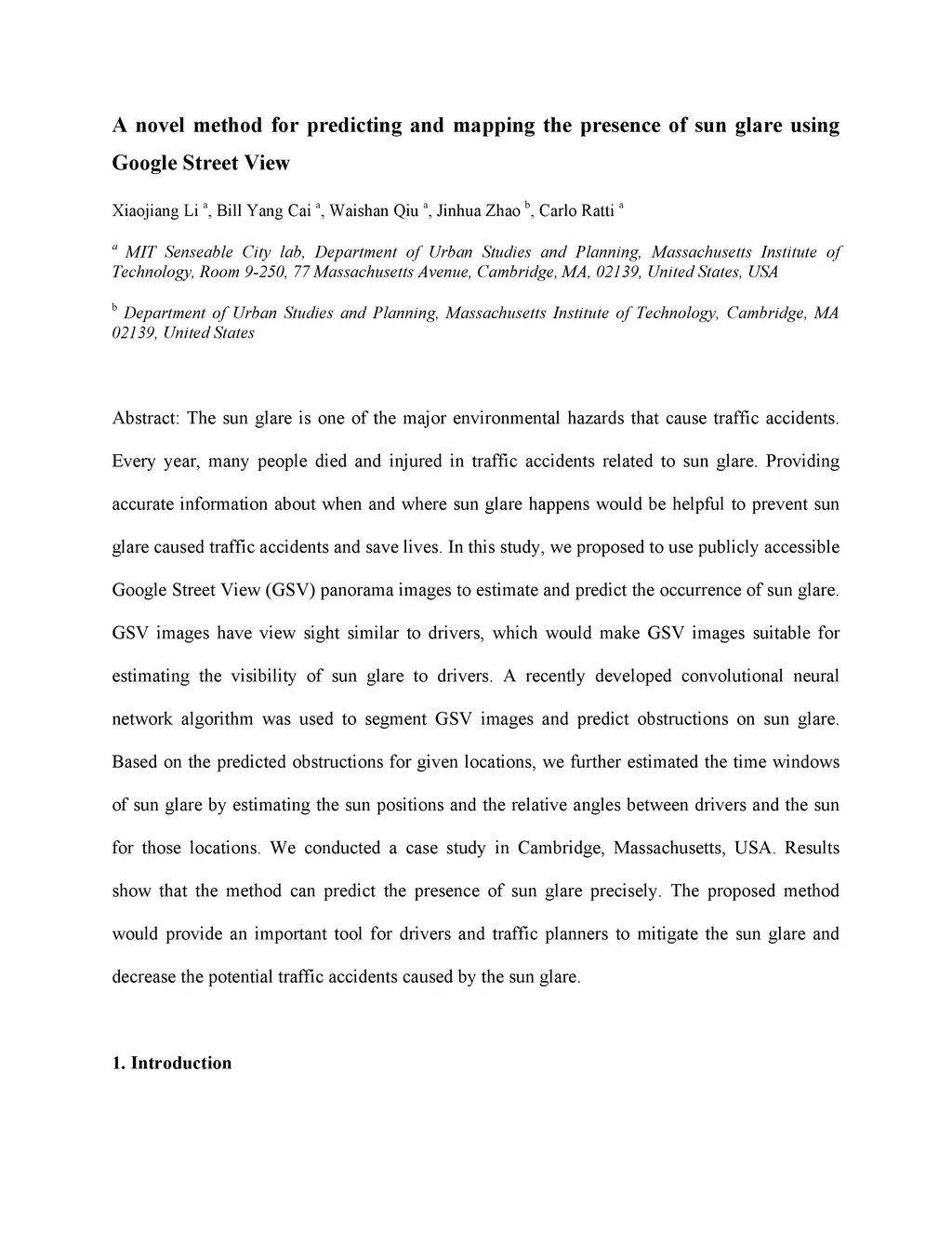 A novel method for predicting and mapping the presence of sun glare