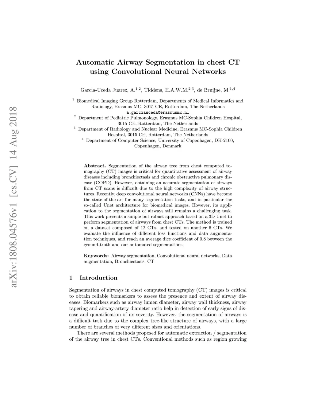 Automatic Airway Segmentation in chest CT using Convolutional Neural