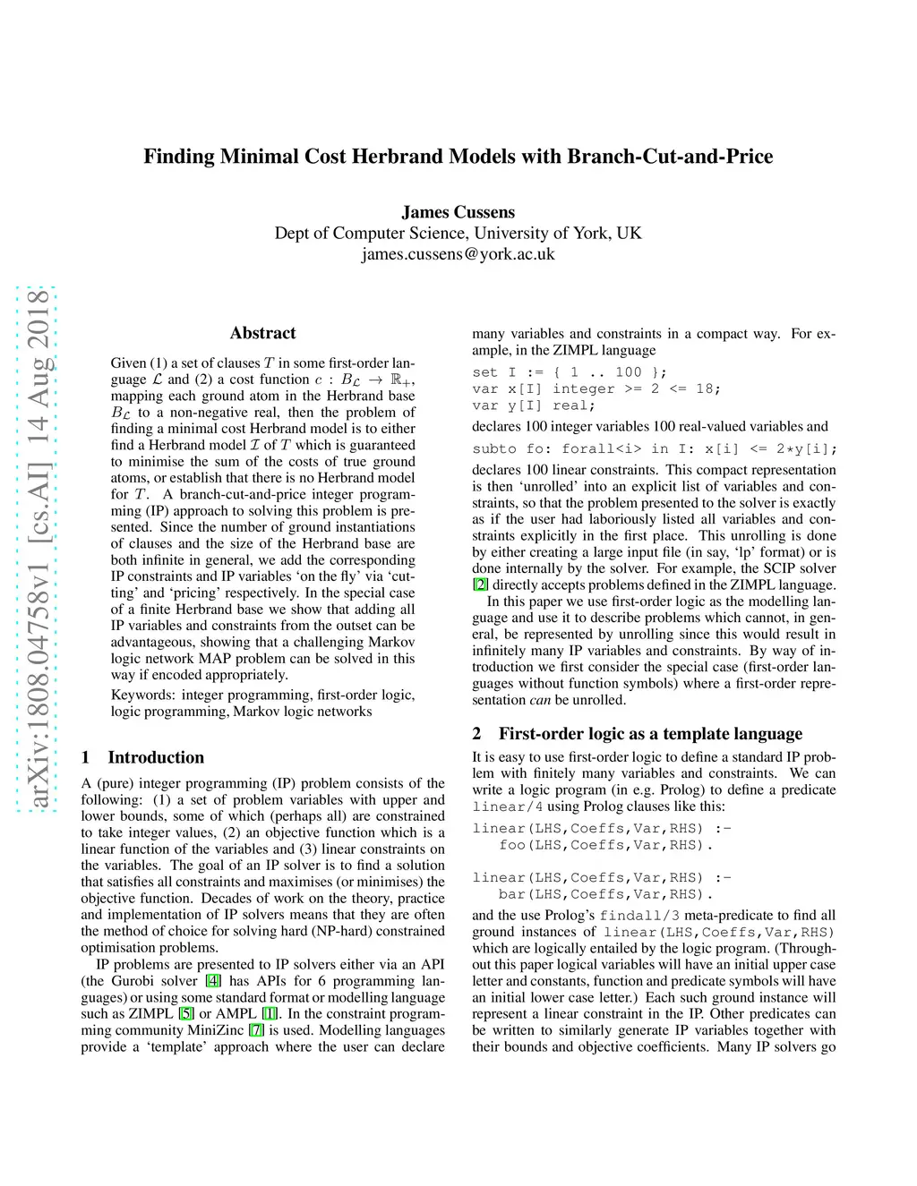 Finding Minimal Cost Herbrand Models with Branch-Cut-and-Price