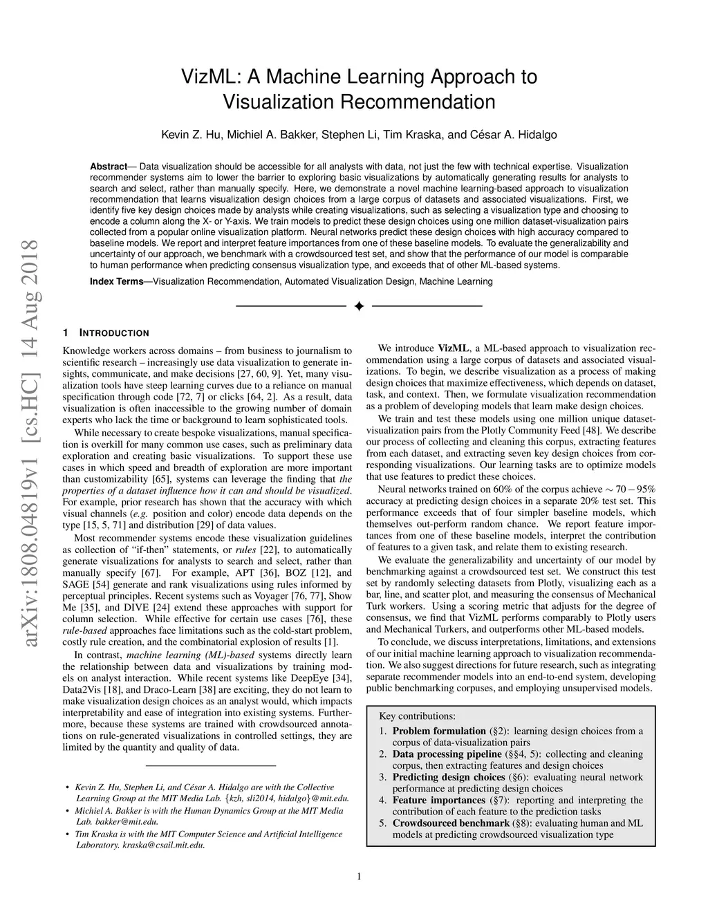 VizML: A Machine Learning Approach to Visualization Recommendation
