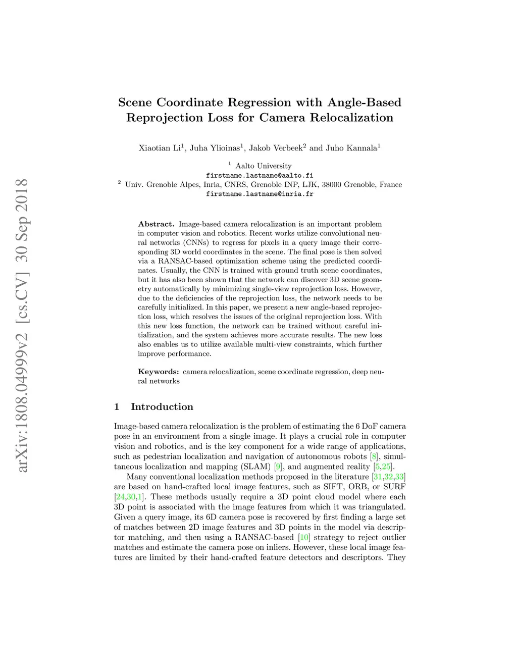 Scene Coordinate Regression with Angle-Based Reprojection Loss for