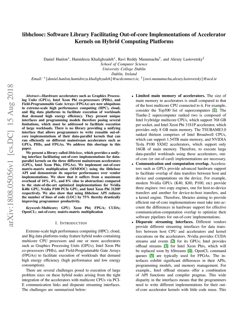 libhclooc: Software Library Facilitating Out-of-core Implementations of