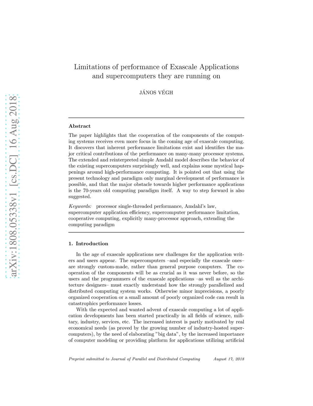 The paper highlights that the cooperation of the components of the computing systems receives even more focus in the coming age of exascale computing. It discovers that inherent performance limitations exist and identifies the major critical contributions of the performance on many-many processor systems. The extended and reinterpreted simple Amdahl model describes the behavior of the existing supercomputers surprisingly well, and explains some mystical happenings around high-performance computing. It is pointed out that using the present technology and paradigm only marginal development of performance is possible, and that the major obstacle towards higher performance applications is the 70-years old computing paradigm itself. A way to step forward is also suggested