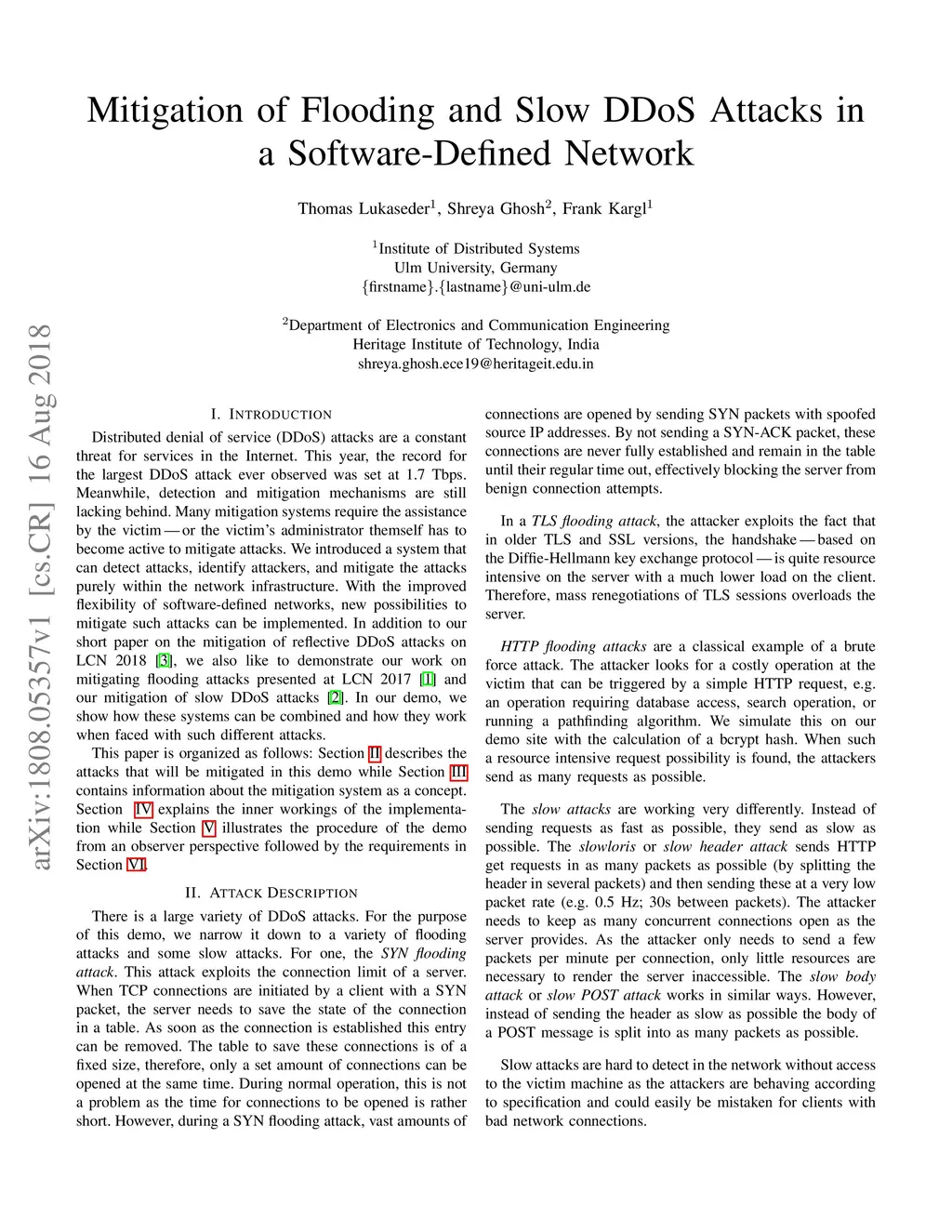 Distributed denial of service (DDoS) attacks are a constant threat for services in the Internet. This year, the record for the largest DDoS attack ever observed was set at 1.7 Tbps. Meanwhile, detection and mitigation mechanisms are still lacking behind. Many mitigation systems require the assistance by the victim - or the victim's administrator themself has to become active to mitigate attacks. We introduced a system that can detect attacks, identify attackers, and mitigate the attacks purely within the network infrastructure. With the improved flexibility of software-defined networks, new possibilities to mitigate such attacks can be implemented. In addition to our short paper on the mitigation of reflective DDoS attacks on LCN 2018, we also like to demonstrate our work on mitigating flooding attacks presented at LCN 2017 and our mitigation of slow DDoS attacks. In our demo, we show how these systems can be combined and how they work when faced with such different attacks.