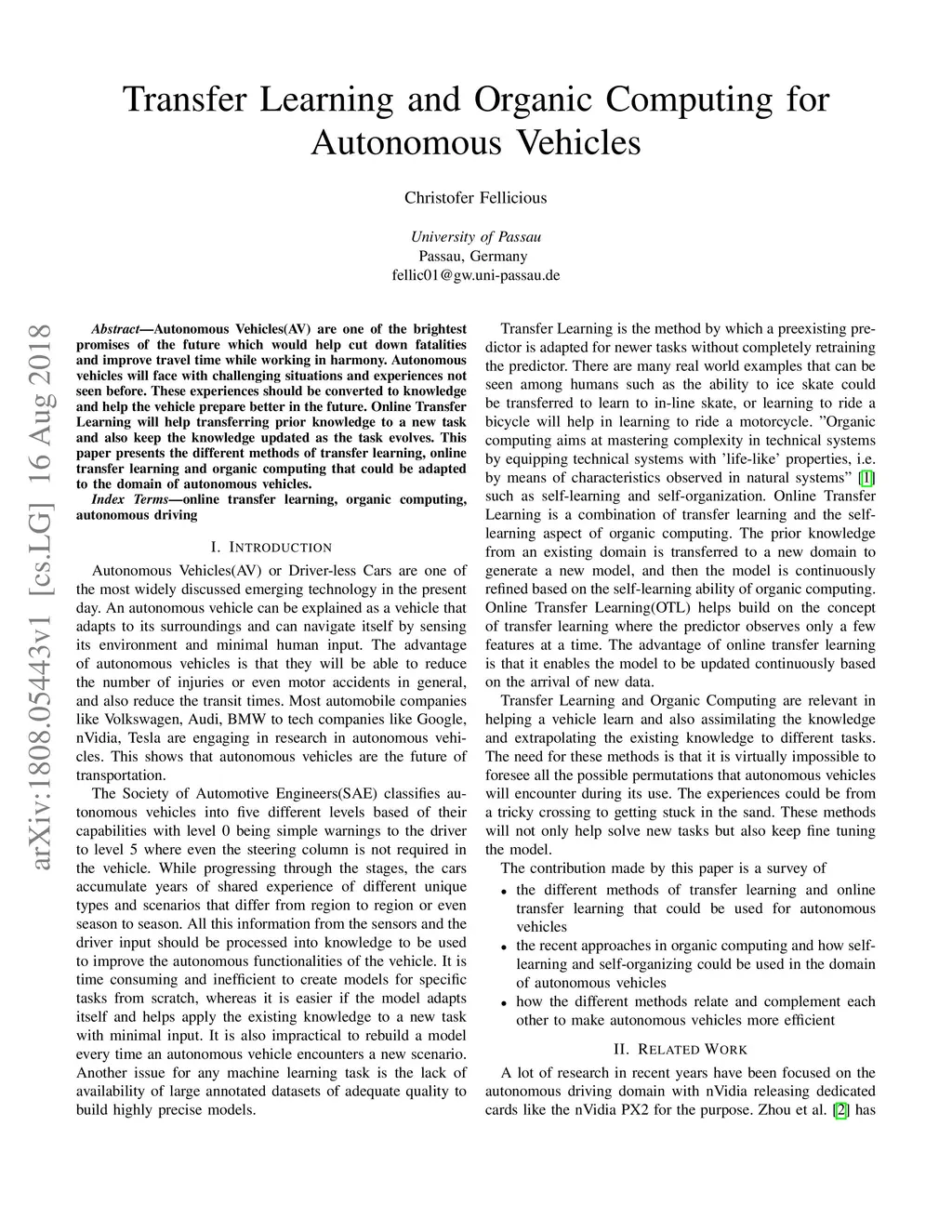Transfer Learning and Organic Computing for Autonomous Vehicles