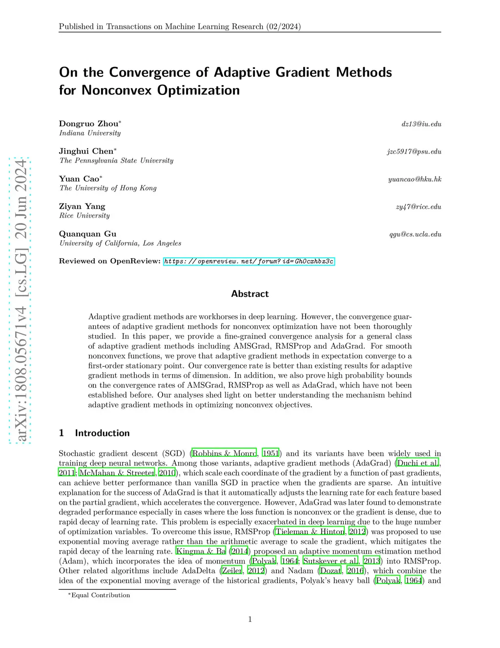 On the Convergence of Adaptive Gradient Methods for Nonconvex