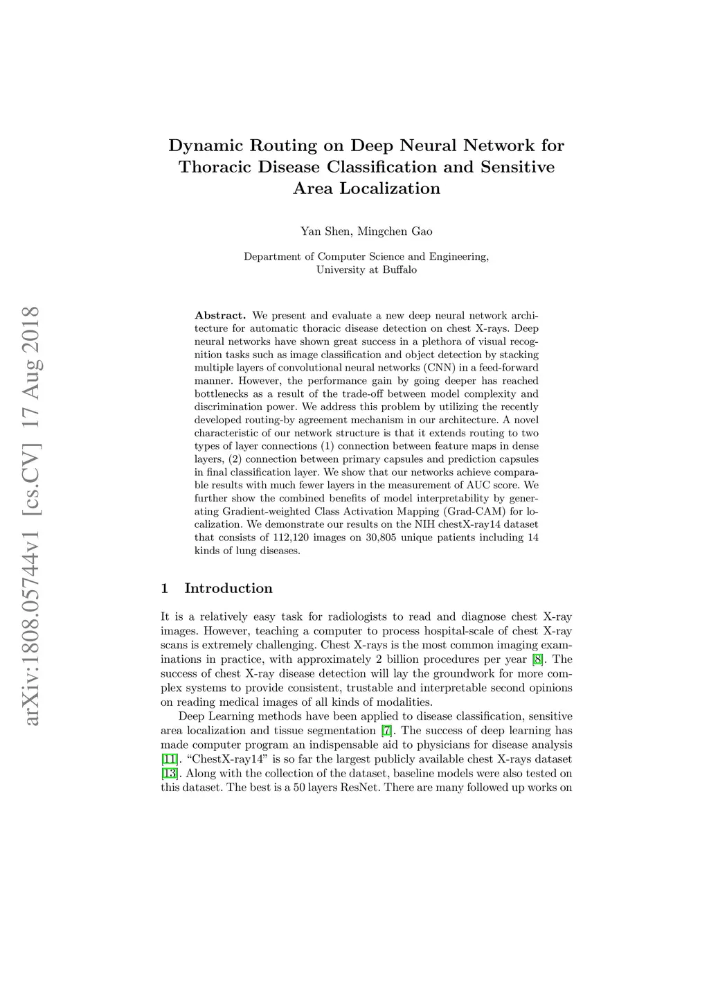 Dynamic Routing on Deep Neural Network for Thoracic Disease